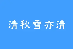 清秋雪亦清